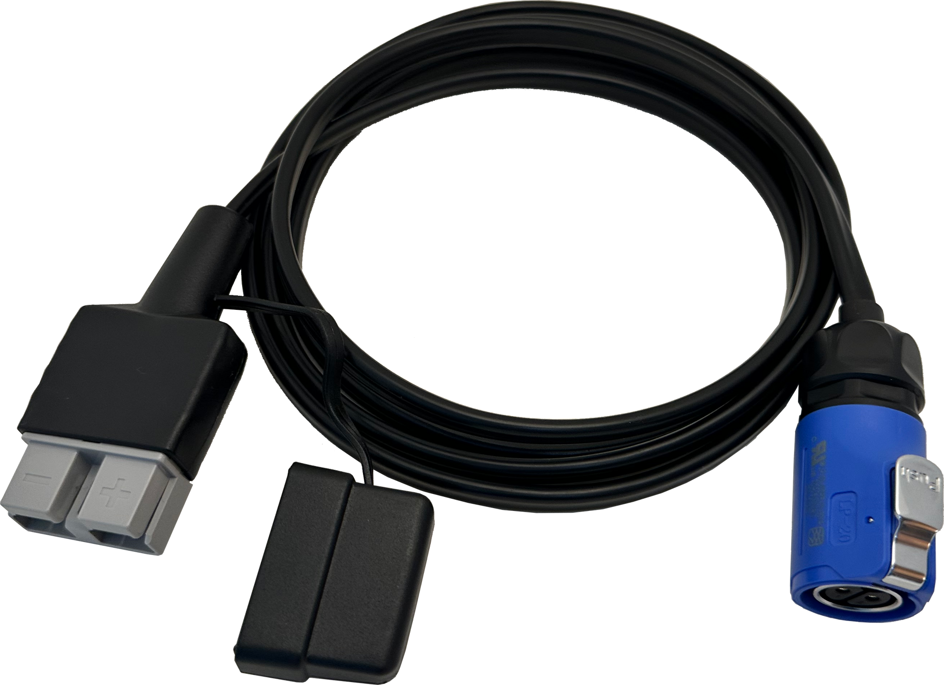 Take advantage of 12V or 24V vehicle power where available. This outdoor power supply securely locks onto the external power port of any Edge Spark® product. Just connect the blue plug to the blue socket.